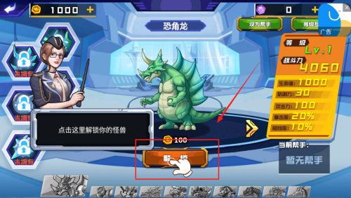 1、解锁怪兽:点击“解锁”按钮来解锁你的怪兽,以便能够使用它进行战斗。