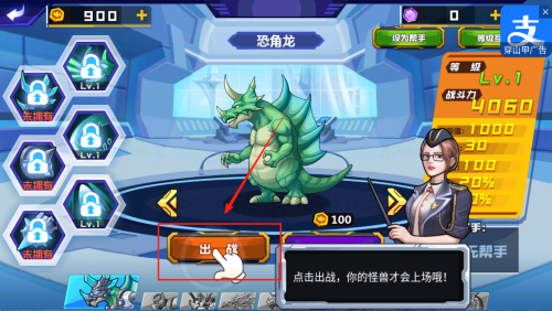 3、出战怪兽:点击“出战”按钮,选择你想要出战的怪兽,然后开始战斗。