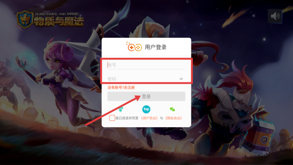1、进入游戏,点击【同意】,弹出账号登录界面。
