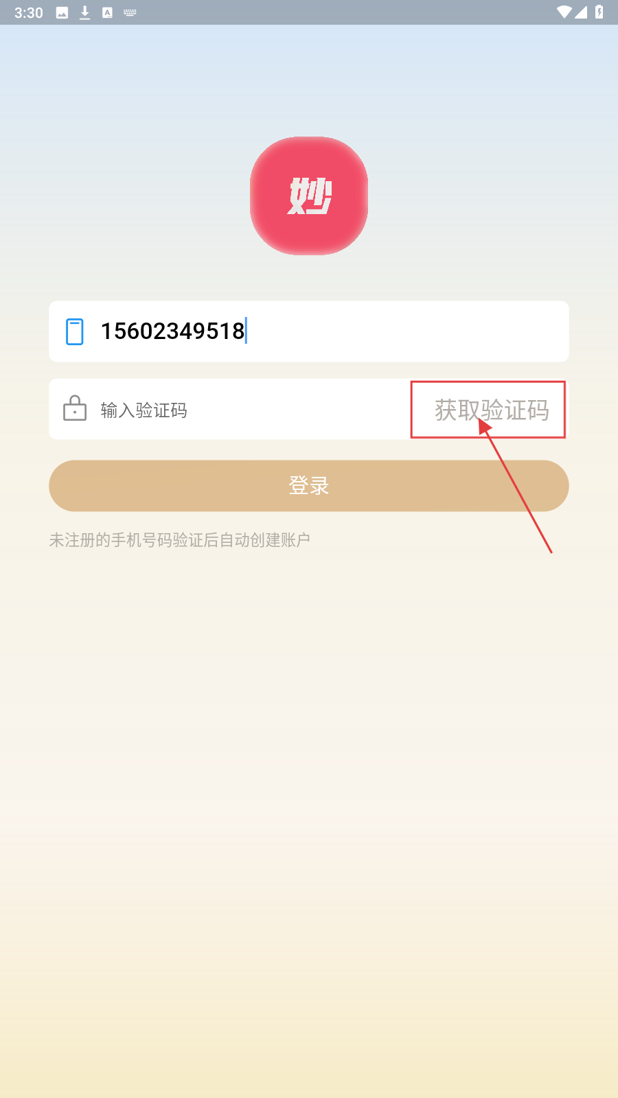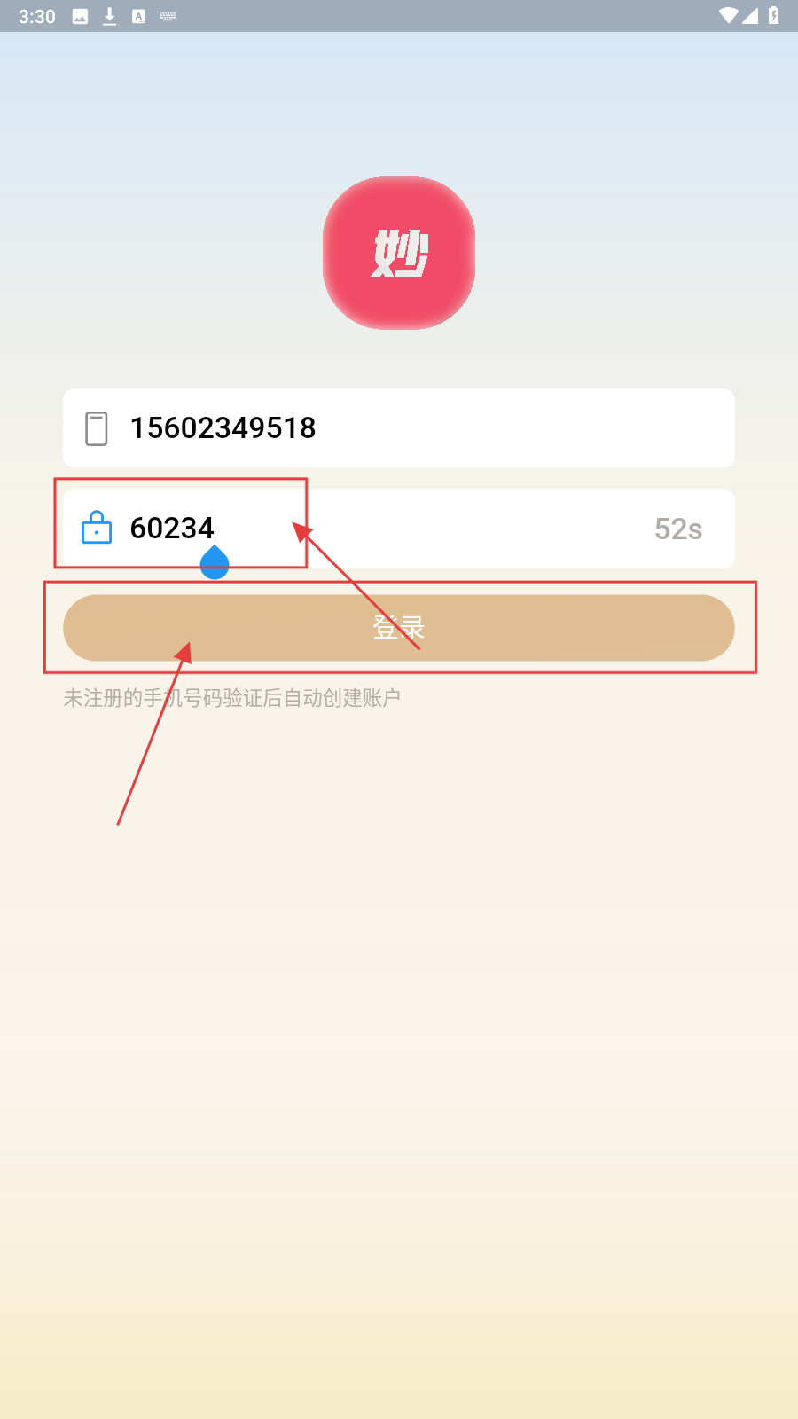 4、确认信息无误后,点击【登录】,未注册手机号验证后自动创建账户,完成登录流程。