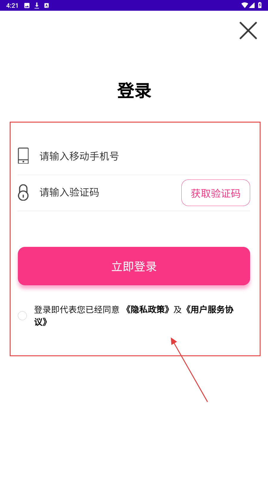 4、若要设置铃声,需在登录页面,输入手机号,点击【获取验证码】,输入验证码,勾选同意相关协议,点击【立即登录】完成登录。