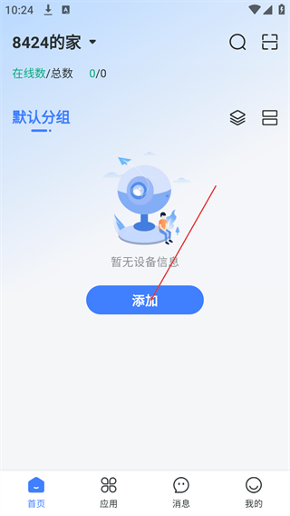 1、在应用首页,点击【添加】按钮,进入扫描设备二维码页面。
