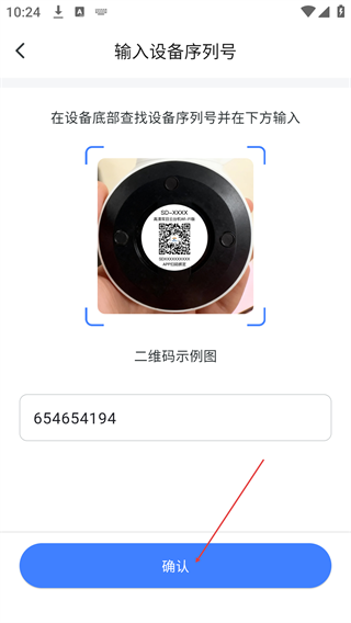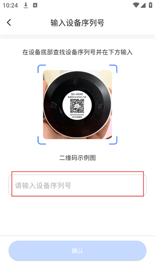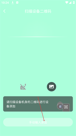 2、在扫描设备二维码页面,点击【手动输入添加】选项,进入输入设备序列号页面。