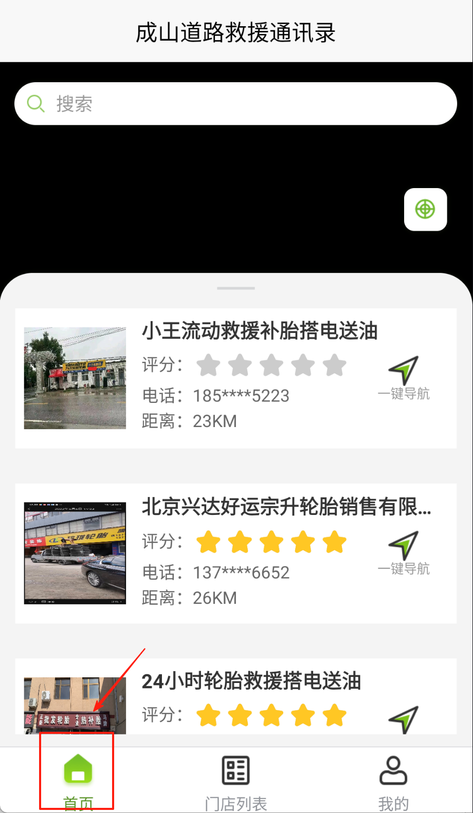 1、首页点"紧急定位"自动获取当前位置,红点标注新合作救援点,收藏功能标记常用门店,离线地图需提前下载哦。