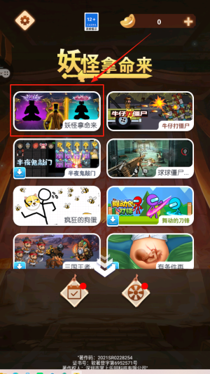 1、进入游戏:在游戏大厅中找到并点击“妖怪拿命来”图标进入游戏。