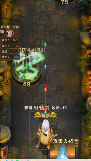 2、获取装备:在游戏中击败敌人后,点击掉落的装备图标,例如“封魔剑”或“轩辕剑”,以增强角色的攻击力。