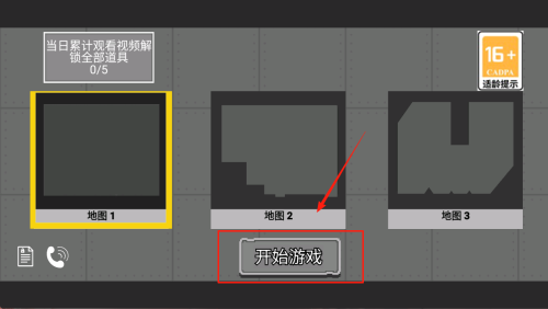 2、选择地图开始游戏:在地图选择界面,选择一个地图并点击“开始游戏”按钮。如图所示,选择地图后点击“开始游戏”进入游戏。