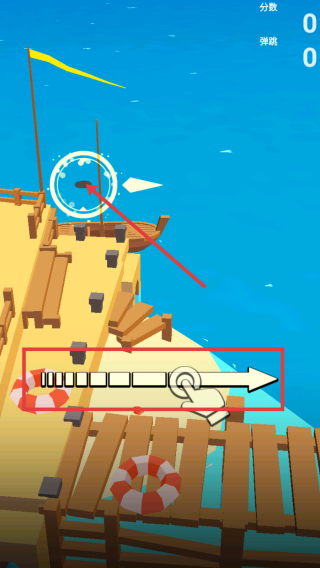 1、在游戏场景中,按照屏幕提示,通过滑动操作蓄力,将物体弹出。