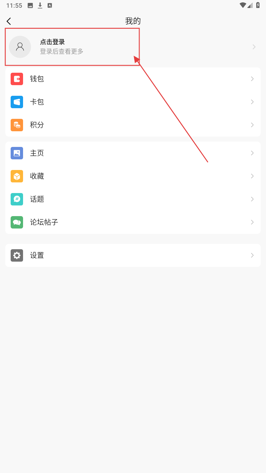 1、打开APP,进入【我的】页面,这里有【钱包】【卡包】等个人功能选项,点击【点击登录】。