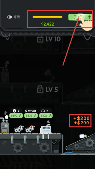 3、当资源积累达到升级所需金额时,点击【升级】按钮提升等级,获取更多资源和功能。