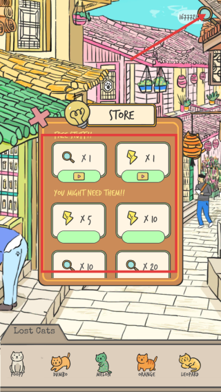 2、点击界面右上角放大镜图标,进入【Store】商店,可通过观看广告等方式免费获取放大镜、闪电等道具。