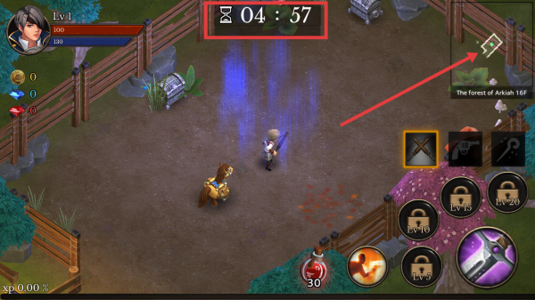 4、留意屏幕上方倒计时,在规定时间内探索场景,如前往小地图指引的【TheforestofArkiah16F】等目标地点推进游戏。
