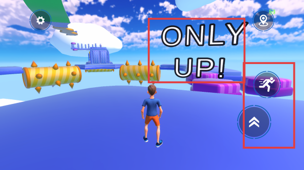 1、游戏以向上探索为目标,通过右下角的跳跃和奔跑按钮操控角色移动,注意躲避场景中的尖刺等危险障碍。