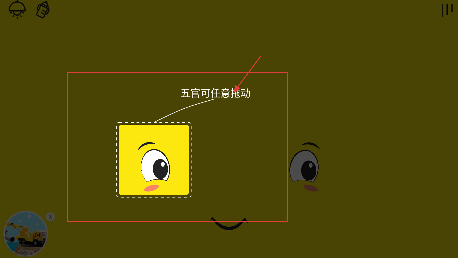 4、页面中间的五官可任意拖动,可进行拖动五官进行编辑。