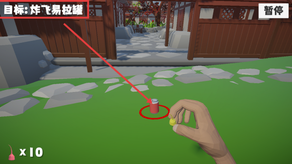 2、利用手中的投掷物(如鞭炮),瞄准目标物品(易拉罐、餐具等)进行投掷,每次投掷后留意剩余投掷物数量。