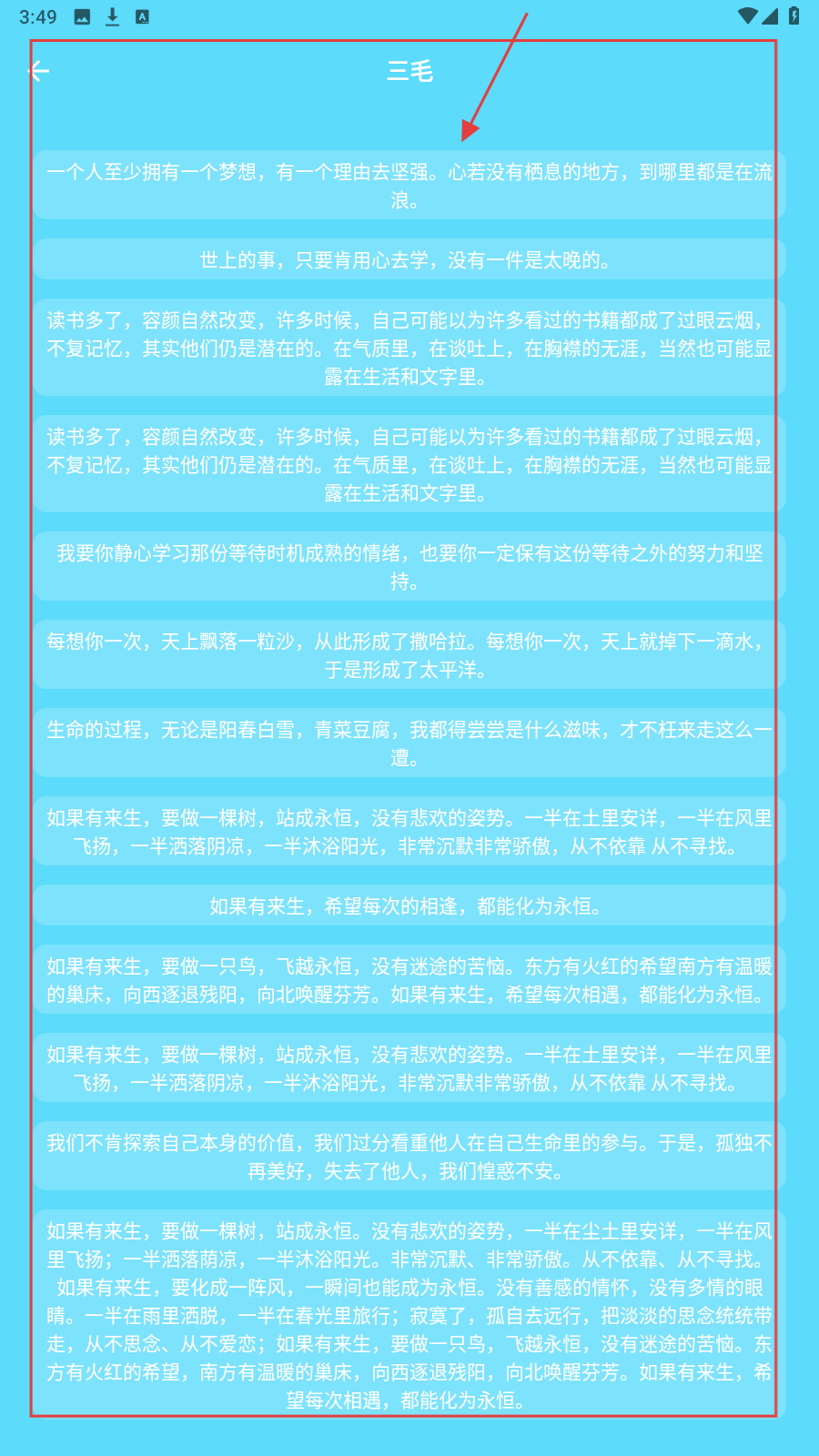 3、选择名人后,进入名言详情页面,可查看该名人的多条名言内容。