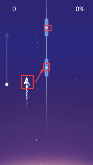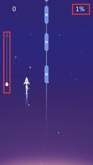 2、游戏过程中,留意屏幕左侧轨道及上方【1%】等进度标识,操控火箭按节奏行进。