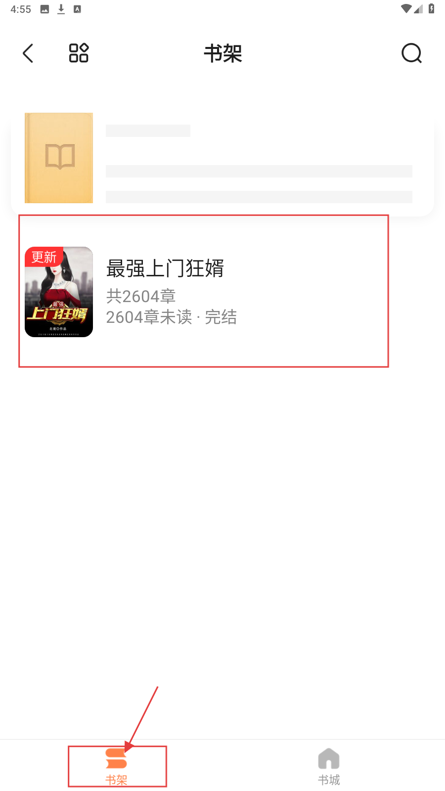 4、点击底部【书架】,进入书架页面,可查看已加入书架的小说。