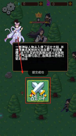 2、提交战斗:确认选择后,点击“提交成功”按钮,进入战斗场景。