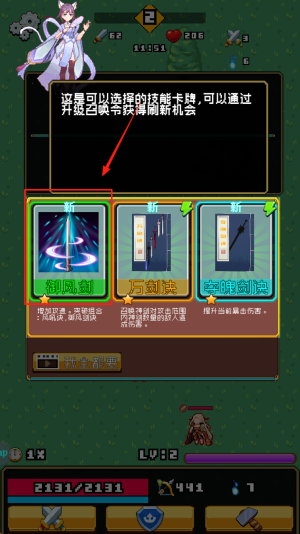 1、选择技能卡牌:查看并选择你想要使用的技能卡牌,可以通过升级召唤来获得新机会。