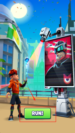 1、开始奔跑:点击“RUN!”按钮,开始在城市街道上奔跑。
