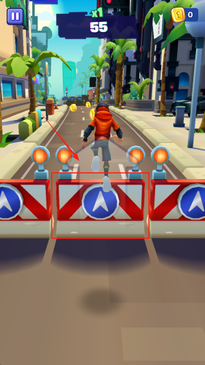 1、开始跑酷冲刺:进入游戏后,操控角色在独特世界的轨道上跑酷,通过滑动屏幕让角色跳跃、下蹲、转向,躲避迎面而来的障碍物,持续向前冲刺。