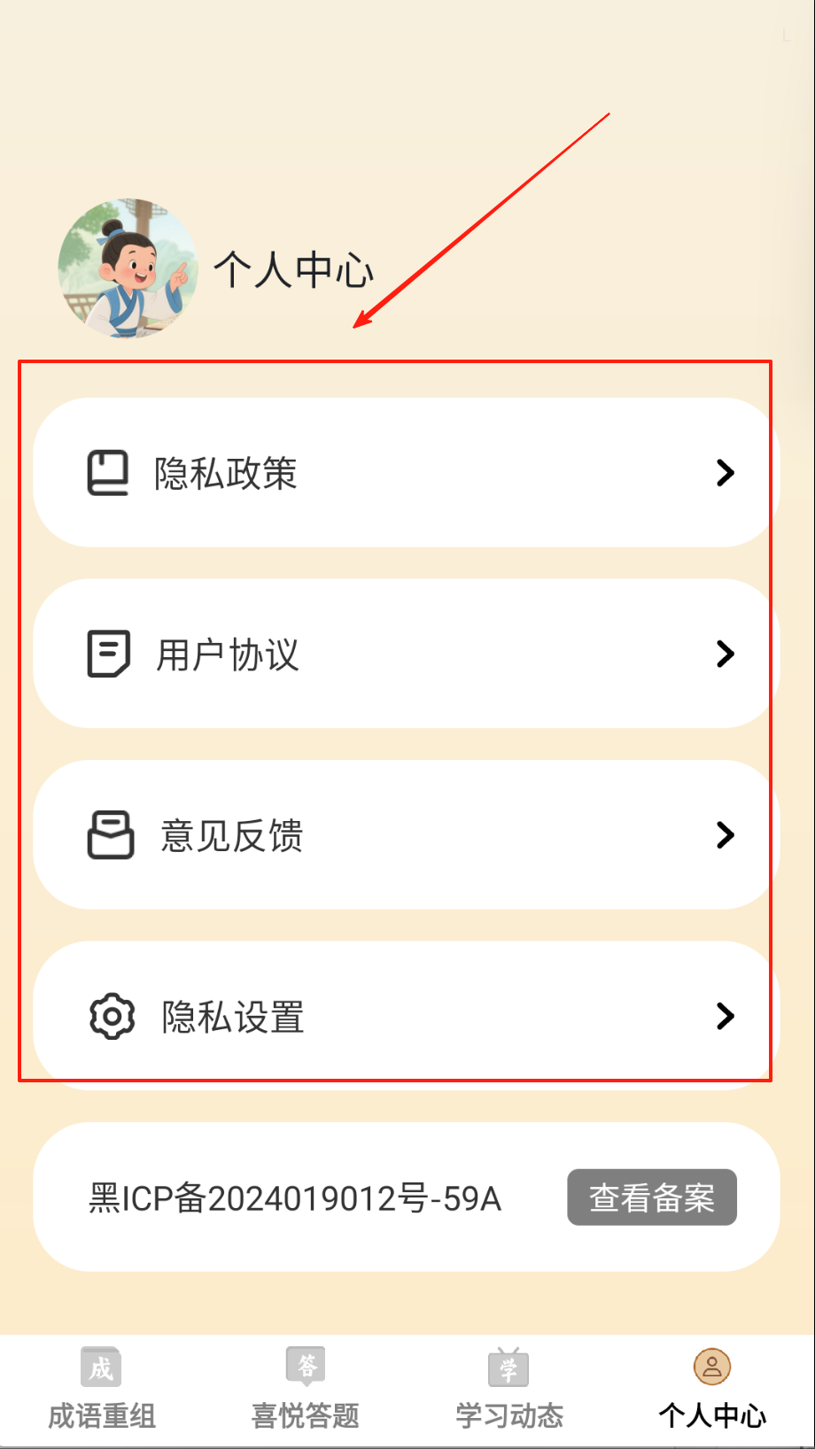 4、设置页调整学习计划,管理收藏成语,清理缓存数据,问题反馈直达客服哦。