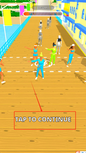 4、继续游戏:完成一段舞蹈后,点击“TAP TO CONTINUE”按钮继续游戏。