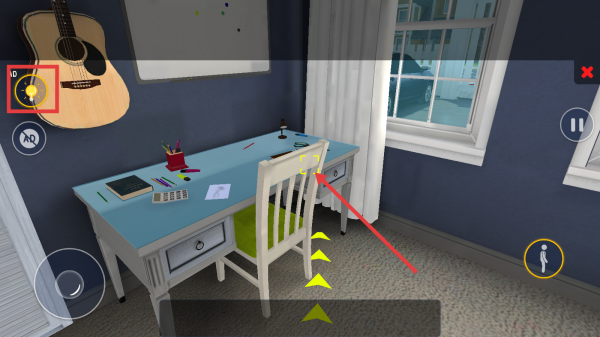 3、通过移动按钮操控角色探索房间,如点击翻开书本等物品,避免被妈妈发现没在学习。
