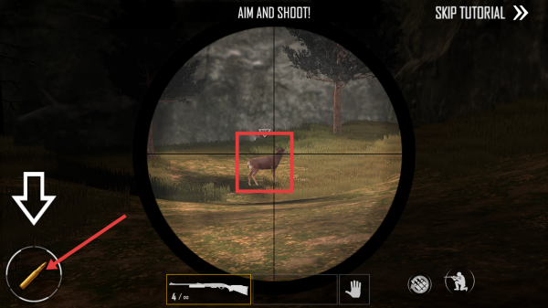 4、当出现提示时,利用瞄准镜瞄准画面中的猎物,点击相应射击按钮进行射击,完成狩猎任务,推进游戏进程。