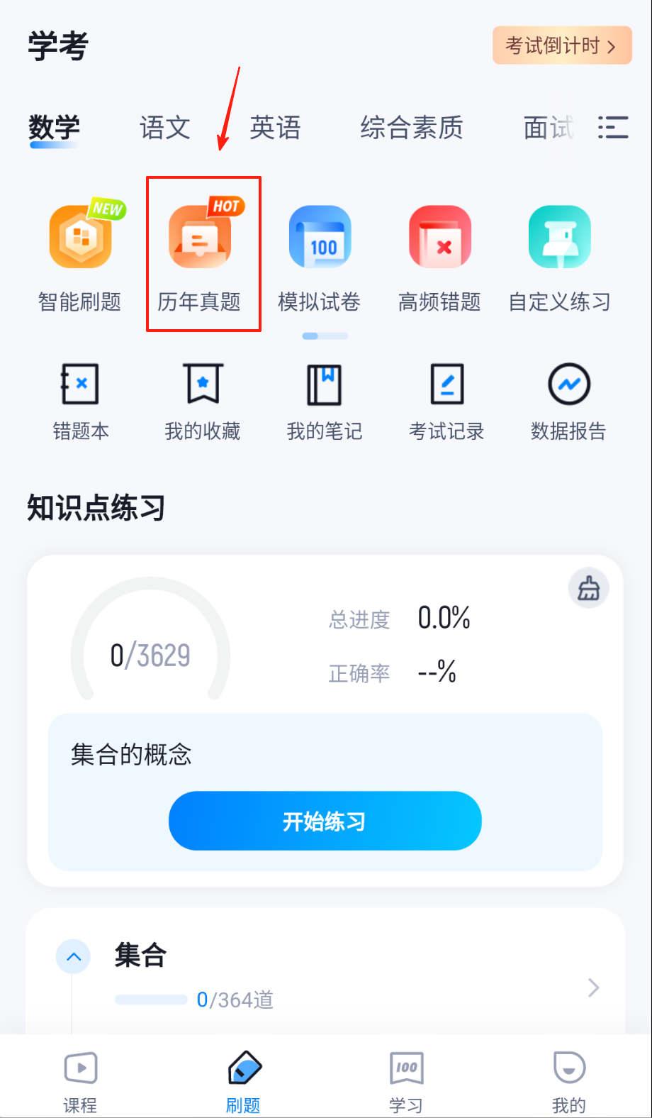 2、真题页查看历年考卷,对比题型变化,收藏重点题目,可以分析命题趋势啦。