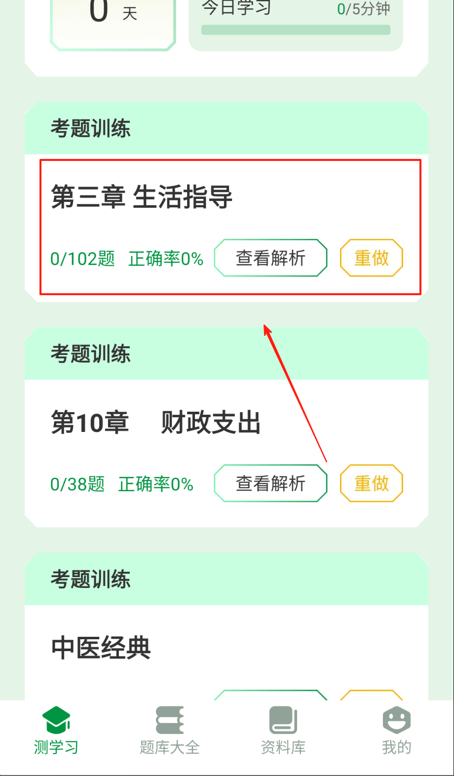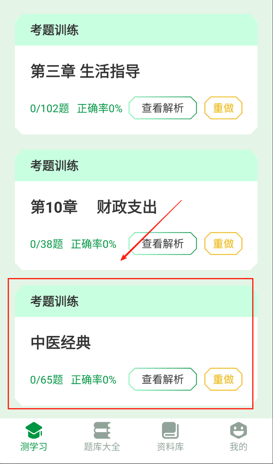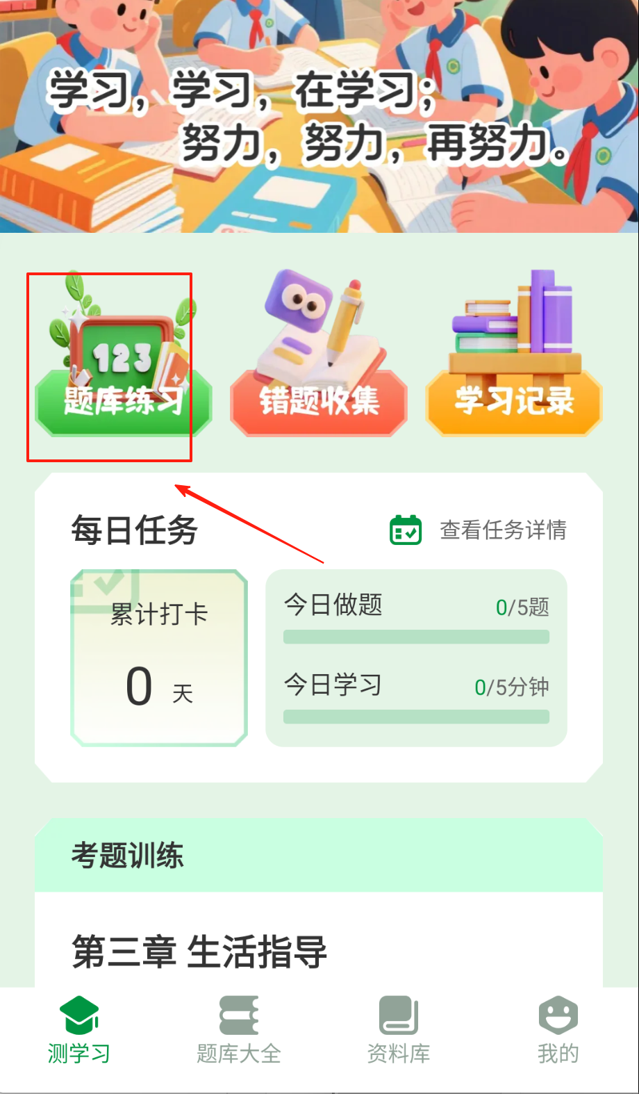 1、首页点"题库选择"筛选考试类型,星标标注高频考点,设置每日题量,开始智能组卷练习哦。