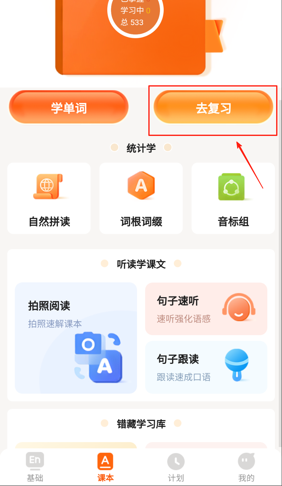 3、复习页自动生成错题集,强化薄弱词汇,查看记忆曲线,调整复习频率呀。