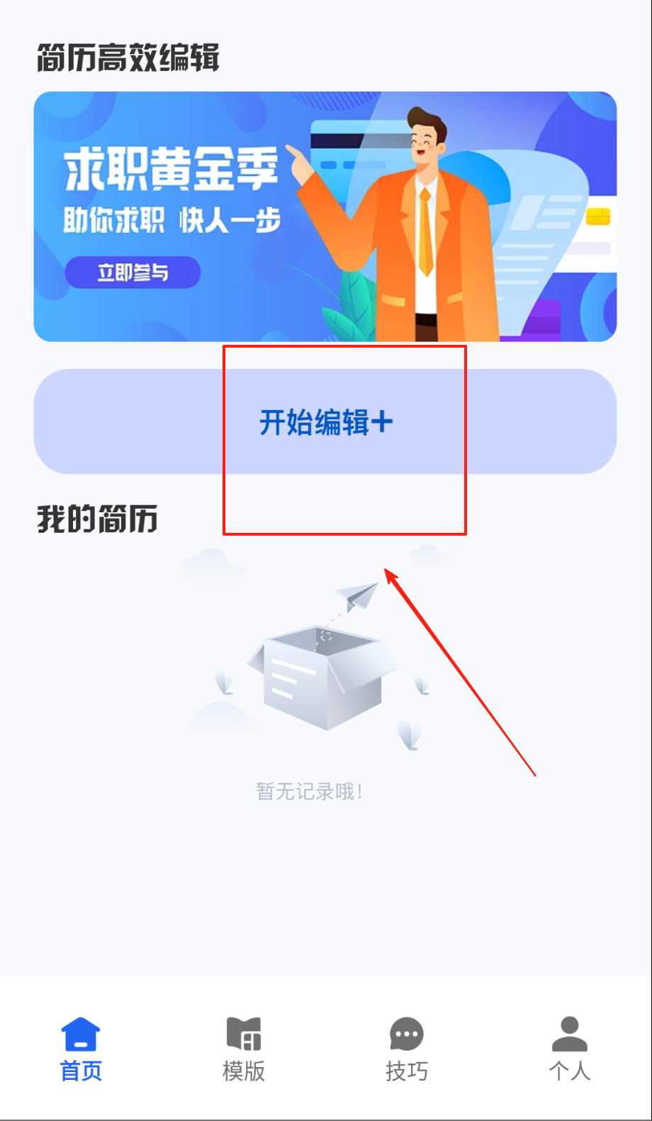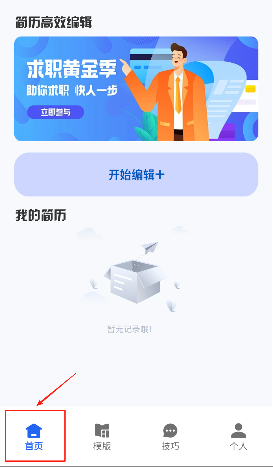 1、首页选"新建简历"输入基本信息,红点标注新模板提醒,收藏心仪设计风格,设置求职目标行业哦。