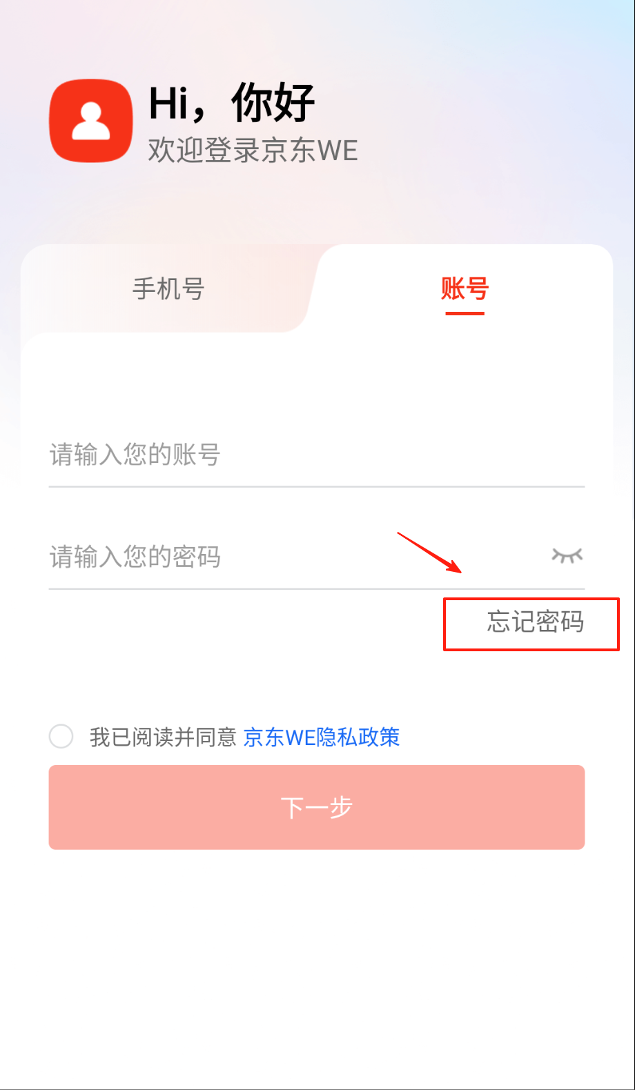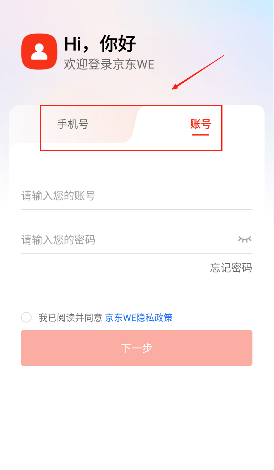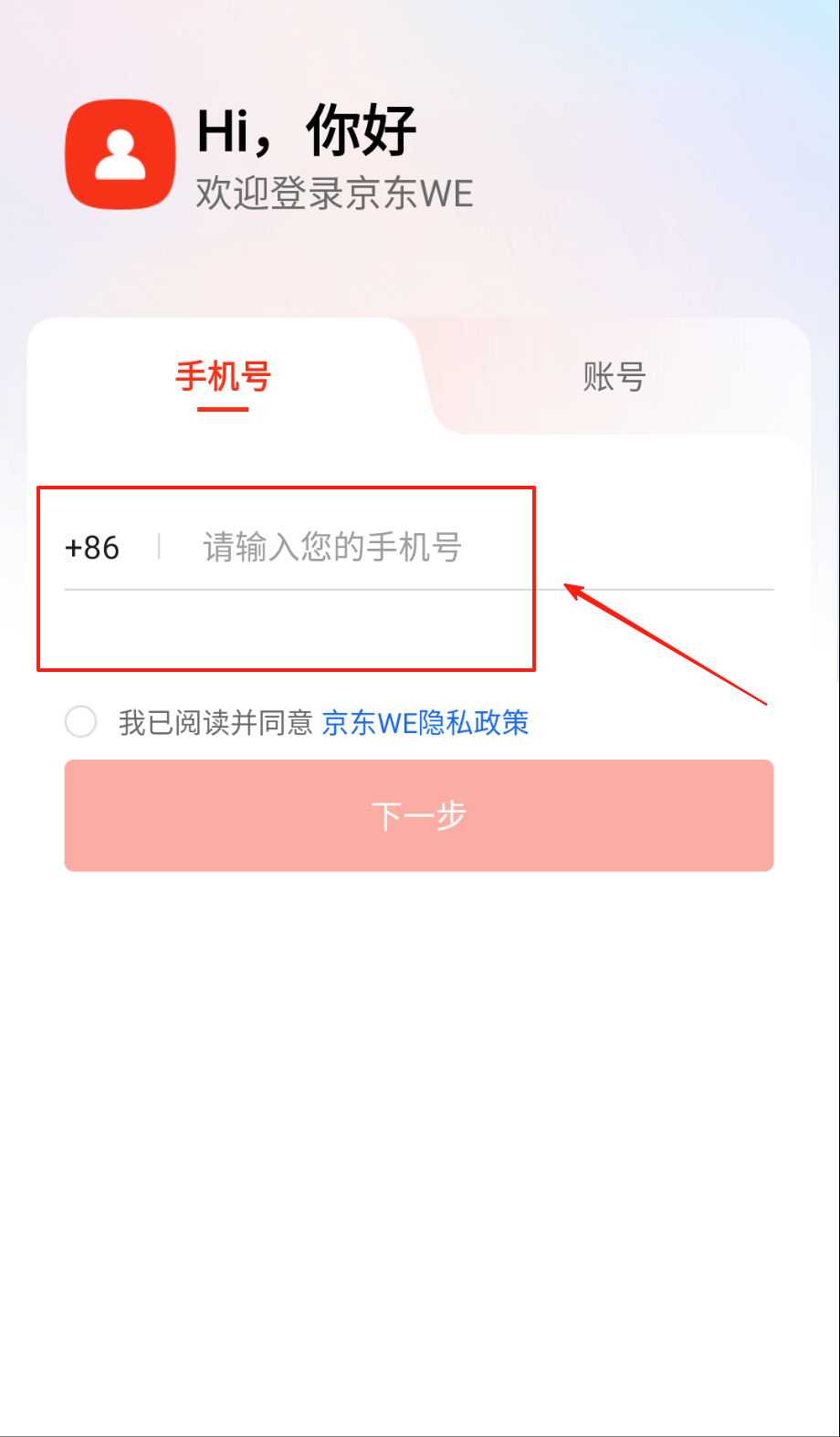 2、输入手机号要带+86前缀,密码框右侧眼睛图标可查看输入内容,勾选隐私政策才能点粉色下一步按钮哦。