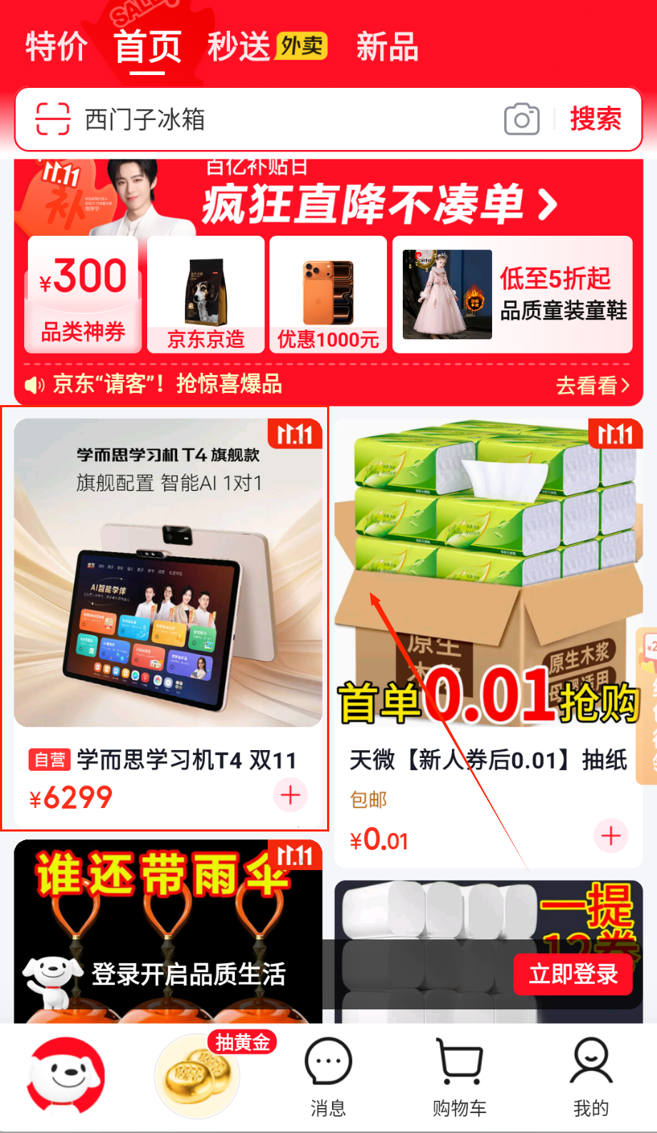 1、打开京东APP,首先在首页顶部找到“登录/注册”按钮,点击后输入手机号获取验证码,完成登录才能享受个性化推荐和会员权益呀。