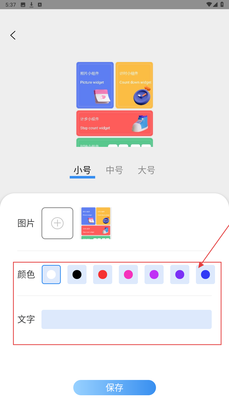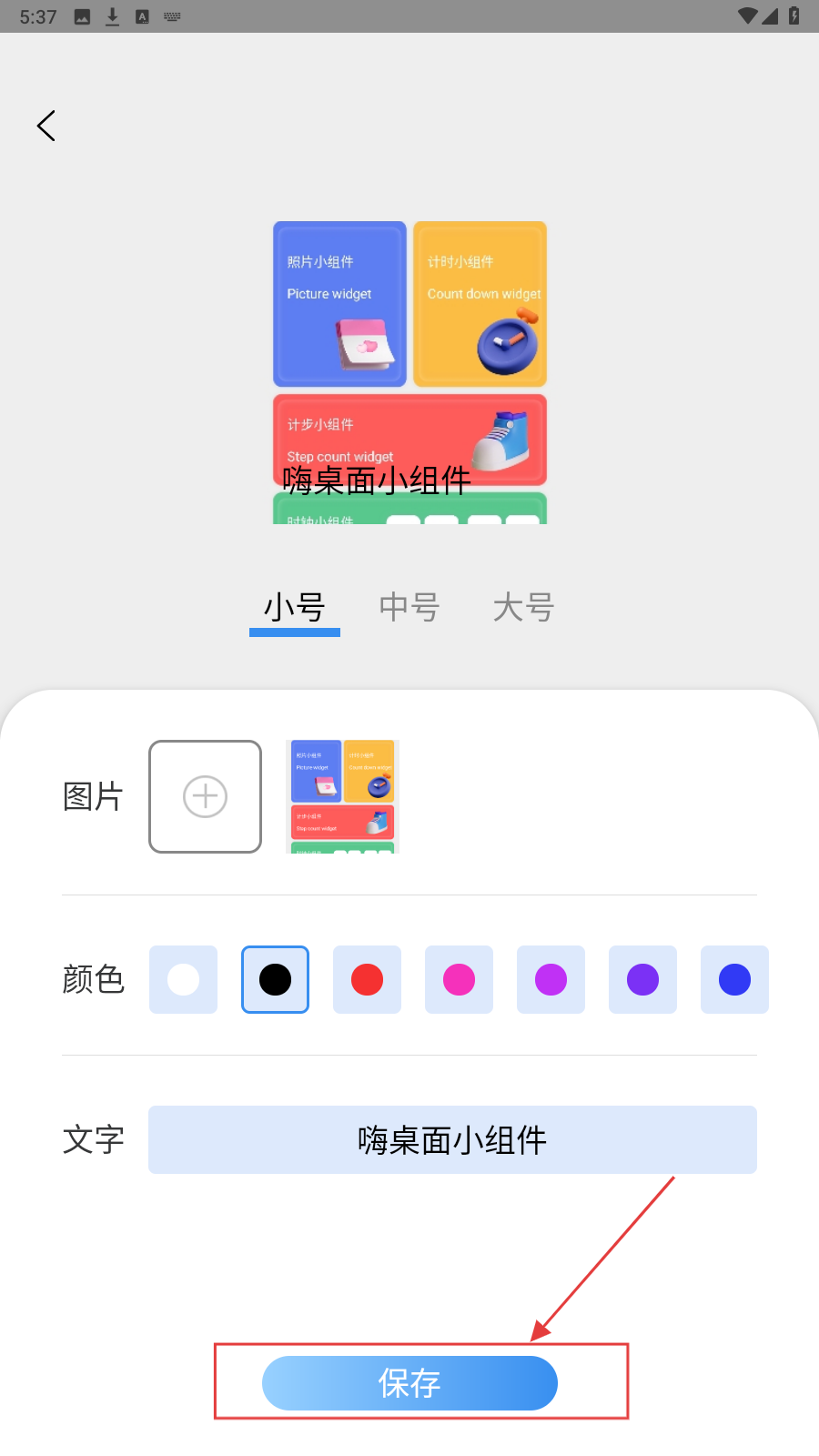 4、完成编辑后,点【保存】,将自定义小组件添加到手机桌面。