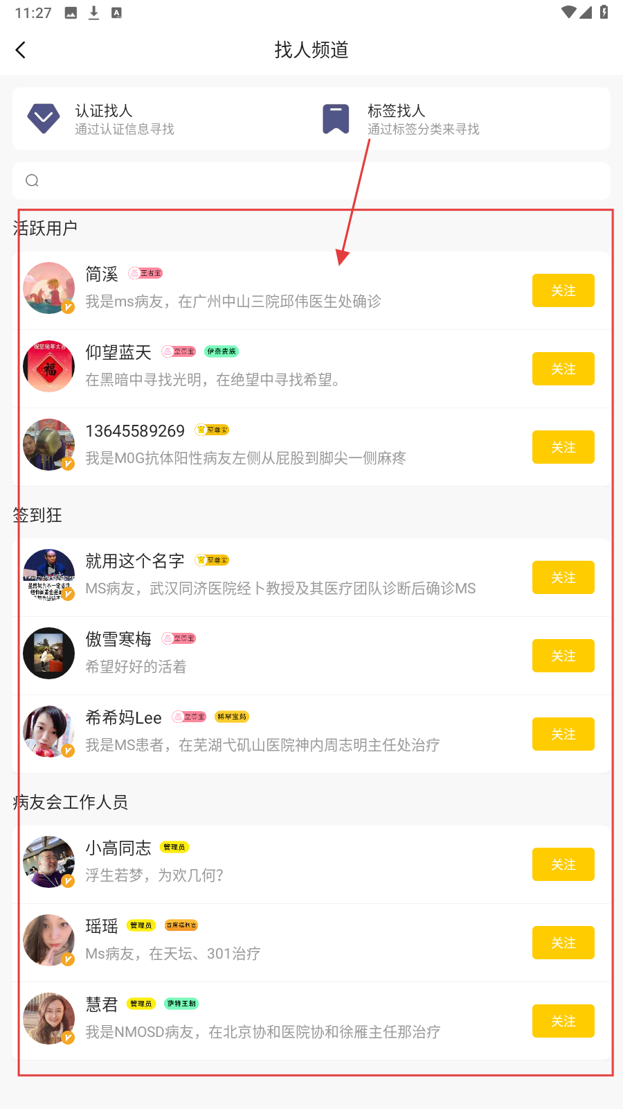 1、打开应用,在【找人频道】页面有认证找人、标签找人功能,也可以在下方小分类中选择用户。