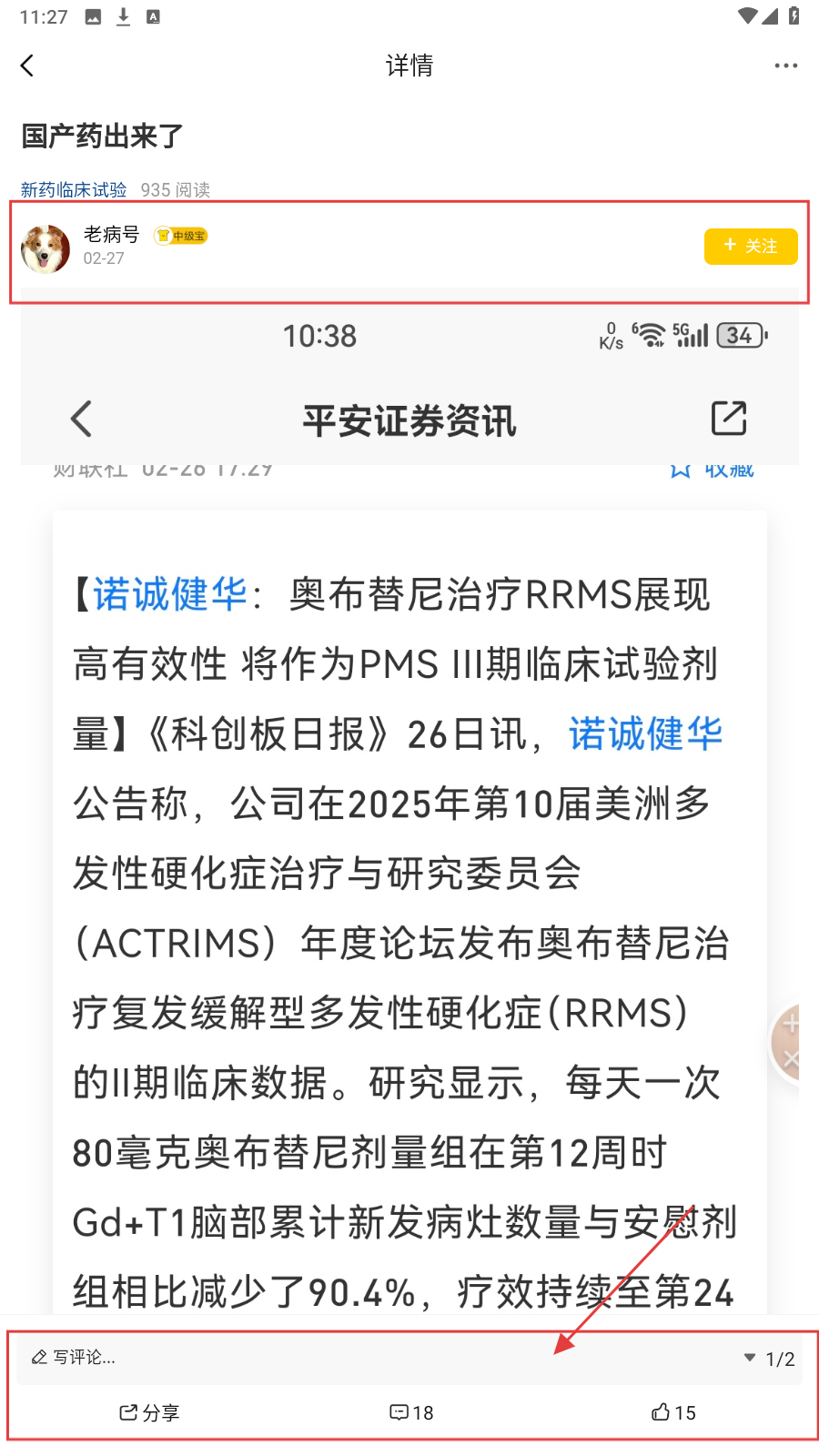 4、点击进入详细文章,可以与文章作者进行分享、评论等互动。