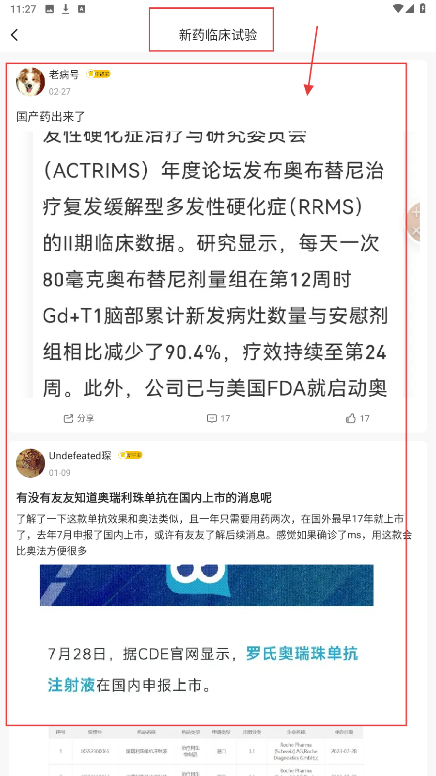3、点击【新药临床实验】进入页面,可以查看最新药品资讯。