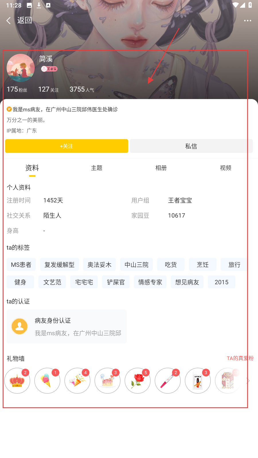 2、进入用户界面,可以查看用户详细资料,进行关注、私信等操作。
