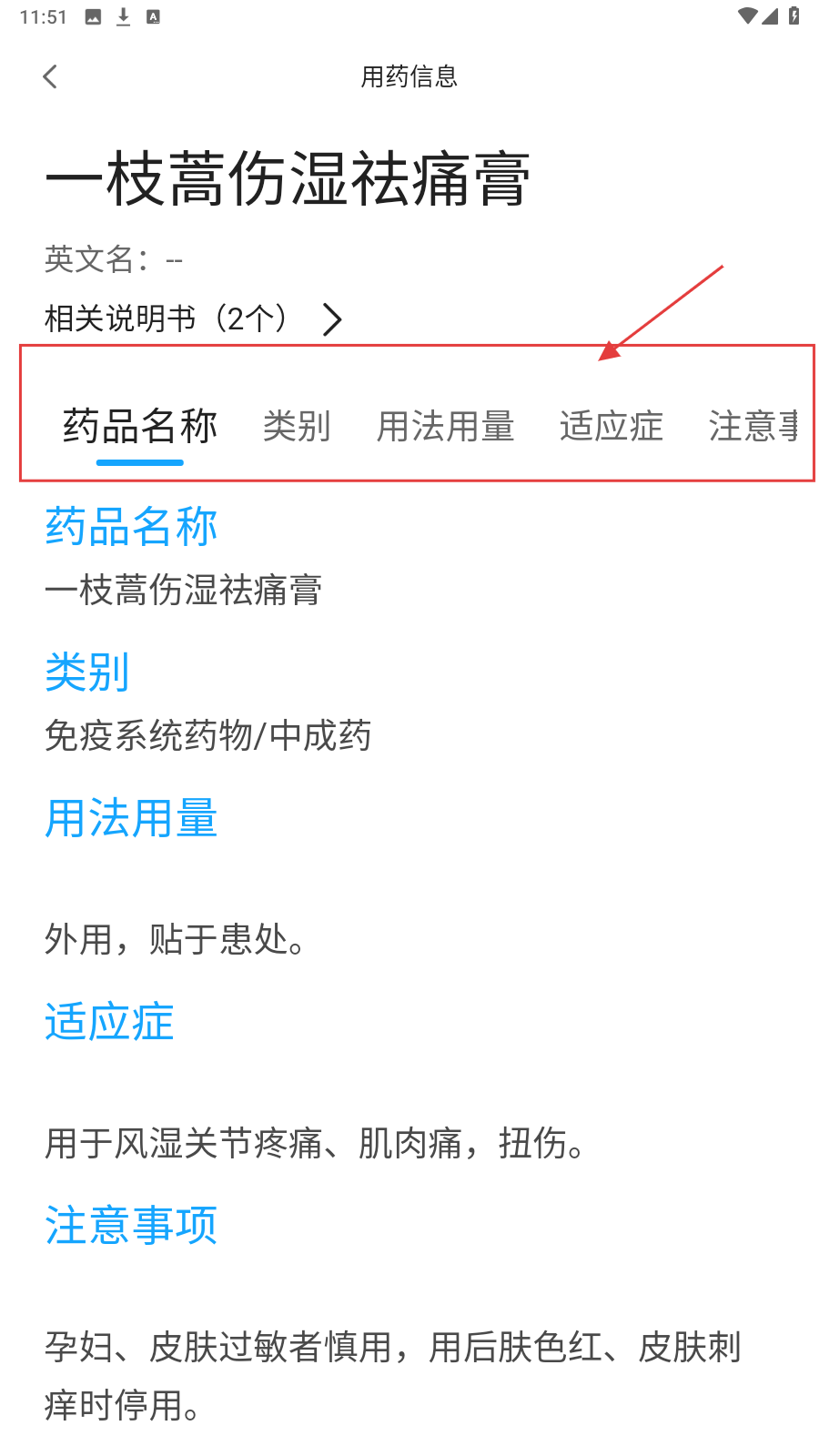 4、进入药品详情页,可以查看药品名称、类别、用法用量等介绍。