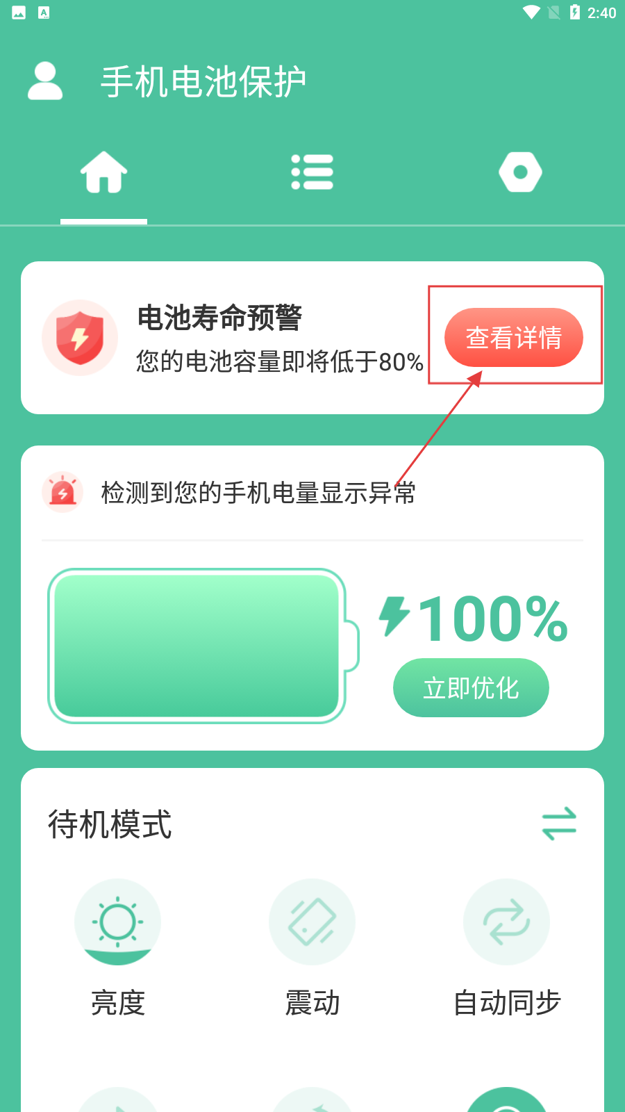 1、在【手机电池保护】页面,点击【查看详情】,可了解电池寿命预警的具体情况。