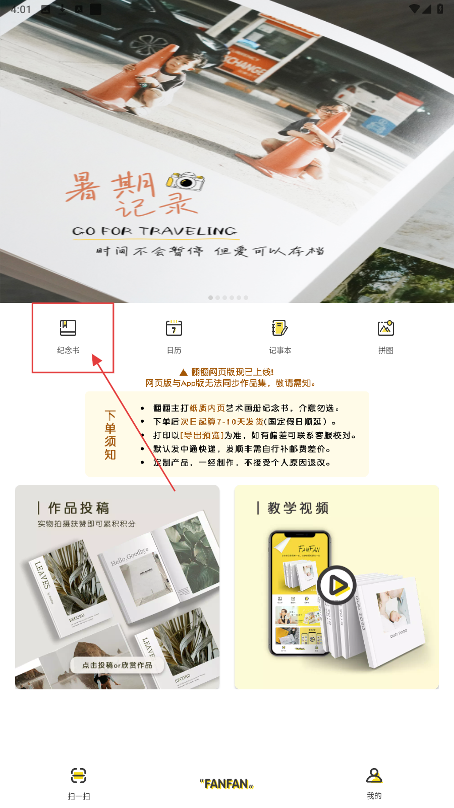 1、在首页,点击【纪念书】,可进入纪念书制作页面,开始制作纪念书。
