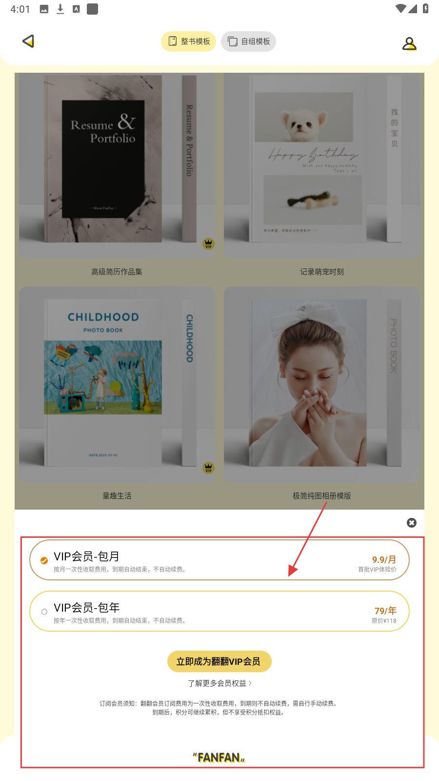 4、在会员订阅页面,可选择【VIP会员-包月】或【VIP会员-包年】,享受会员权益。