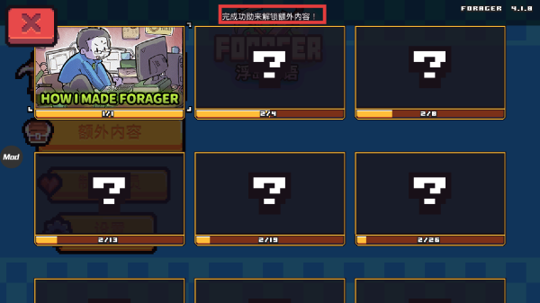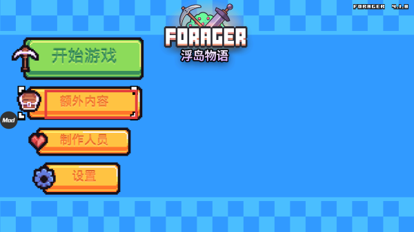 1、进入《FORAGER-浮岛物语》游戏,点击【额外内容】按钮,了解游戏内涵。