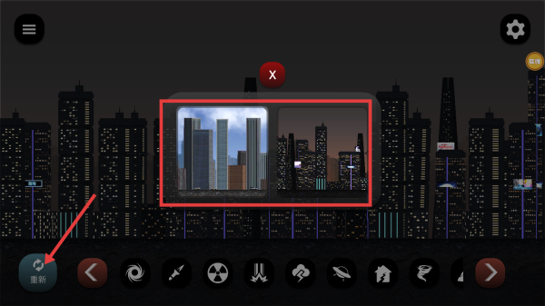 4、若想重新开始,点击左下角【重新】按钮,重置城市状态,开启新一轮破坏体验。