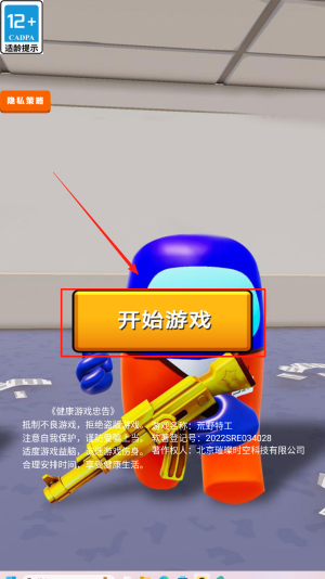 1、查看并确认适龄提示。启动游戏后,先阅读界面上的“12+ CADPA 适龄提示”,确认自己符合年龄要求再点击“开始游戏”。