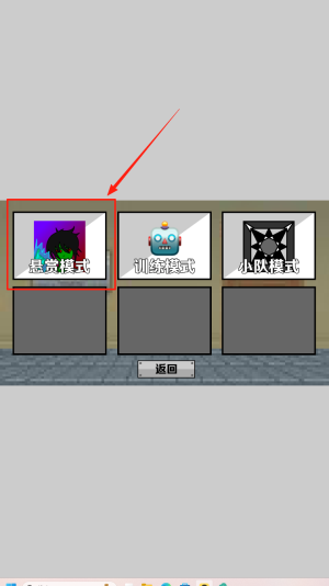 3、选择训练或赏模式。在“赏模式 训练模式 返回”菜单中,新手先点“训练模式”熟悉操作,再返回选择“赏模式”正式挑战。