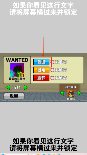 2、切换屏幕方向。当看到“如果你看见这行文字 请将屏幕横过来并锁定”时,把手机横置并锁定横屏,进入最佳游戏视角。